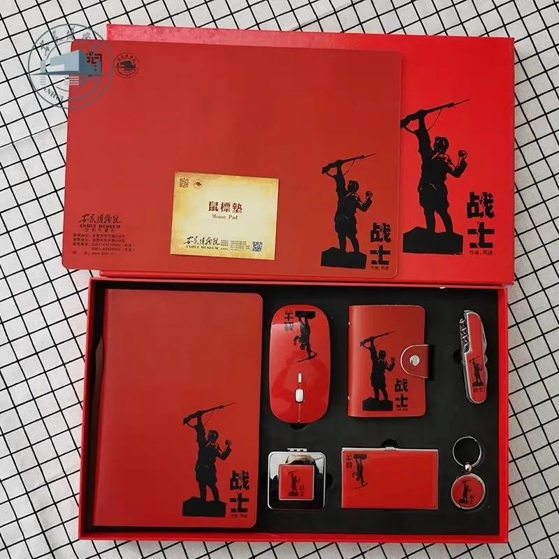 “抗战英雄商务八件套”以大红色为主色调,以安徽博物院馆藏文物《抗战木刻选集》中马达的木刻作品《战士》为主题,通过鼠标、笔记本、卡包、钥匙扣等文创产品,讲述英雄故事,宣传英雄事迹、牢记英雄壮举、感恩民族英雄、传承英雄精神、珍藏红色记忆。
