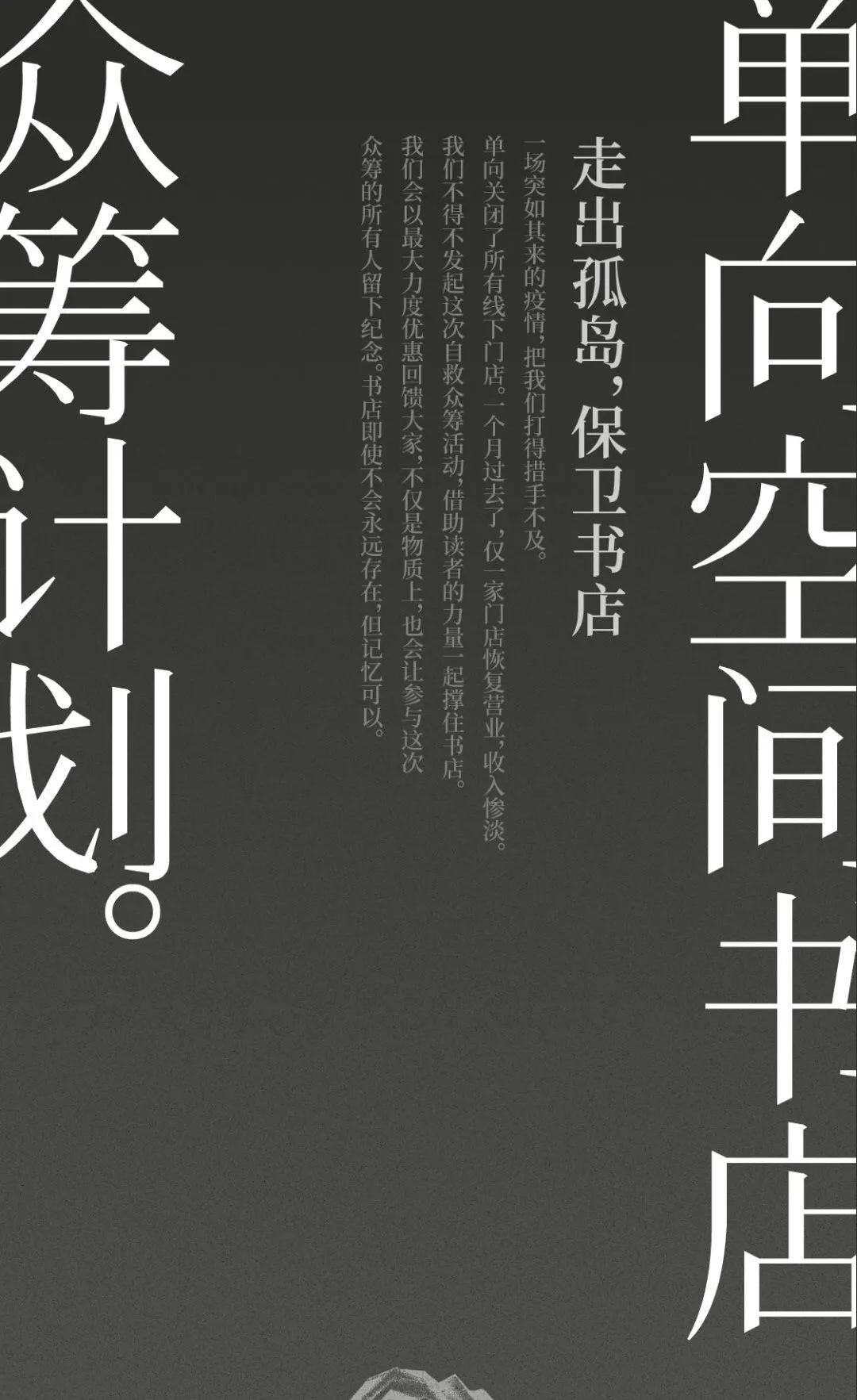 “一场突如其来的疫情把我们打得措手不及......我们不得不发起这次自救众筹活动,借助读者的力量一起撑住书店。”